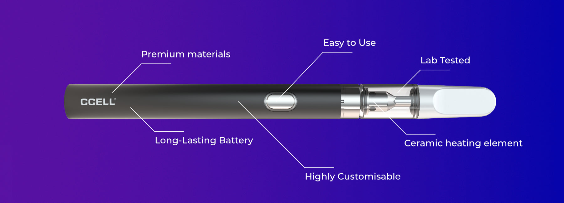 CCELL devices and regular vape pens differ in their heating technology and design. CCELL devices use ceramic heating elements, providing consistent heat distribution and enhanced flavour. They have a sleek and discreet design, while regular vape pens are typically longer and cylindrical. CCELL devices offer reliable performance, reduced clogging, and customisation options for all CCELL devices. Regular vape pens may have some adjustable features, rechargeable batteries, and the ability to refill or replace components. The choice depends on personal preferences but with CCELL devices they are known for convenience and flavour.